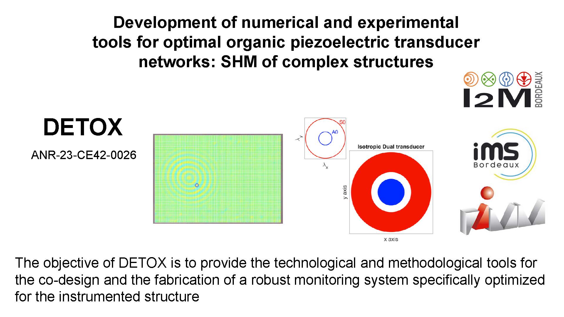 The DETOX project focuses on new ultrasound inspection methods for Structural Health Monitoring (SHM). Standard PZT ceramics are efficient but limited by toxicity, rigidity, and design constraints. The project instead develops transducers using lead-free P(VDF-TrFE) polymer,...