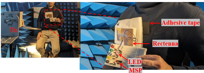 Recent advancements in remote healthcare and biomedical technologies are rapidly accelerating the development of flexible, wearable devices for continuous health monitoring. The Internet of Medical Things (IoMT) market is projected to grow at a Compound Annual Growth Rate (CAGR) of 38.5% between 2024 and 2032, with Wireless Body Area Networks (WBAN) serving as a critical driver of this growth. Thus far, the expansion of IoT devices has faced challenges in designing wearable, miniaturized, and biocompatible prototypes with power-autonomous operation for physiological sensors. Therefore, this thesis aims to develop a wearable Energy-Harvesting (EH) system, in the form of a skin-applied device, designed for monitoring physiological conditions. The primary challenge of this research is the impact of the human body on the antenna system’s performance when positioned directly on the skin. The body absorbs part of the radiation, which significantly reduces the efficiency of the EH system. In this context, Artificial Magnetic Conductors (AMC)s present a promising solution as reflectors for low-profile antennas, in the GSM and WiFi bands. By leveraging their inherent zero-phase reflection properties, AMCs improve antenna performance while eliminating the need for a bulky quarter-wave backplane. The real-world tests of the dual-band AMC-backed antenna showed minimal performance distortion for WBAN applications. Finally, the integration of a designed RF-to-DC converter enables the rectenna to function as an autonomous wearable energy harvester, providing a rectified voltage of 1V at approximately -17.5 dBm, suitable for powering certain physiological sensors.