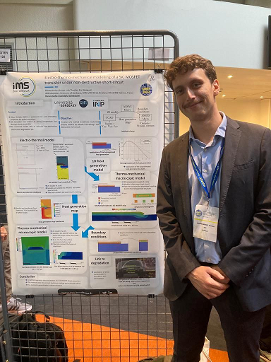 Florent LOCHE-MOINET will defend his thesis on December 18th, 2023 at 10:30 am, (amphi JP. DOM – IMS Laboratory) on the subject : “Electrothermal modelling for the analysis and lifetime estimation of short-circuited semiconductor modules”.