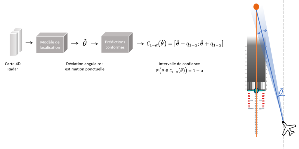 The aim of this thesis is to improve the safety and fluidity of approach and landing maneuvers by developing a solution based on Machine Learning and the use of 4D radar data. In the complex and regulated context of aviation, where the final approach to a flight represents a critical challenge, this solution aims to predict the location of the aircraft in relation to the landing runway, while providing a visualization of the environment by detecting characteristic elements of the approach scene. To meet the requirements of air navigation standards, the supervised learning model developed incorporates statistical guarantees, thus ensuring the reliability of predictions.